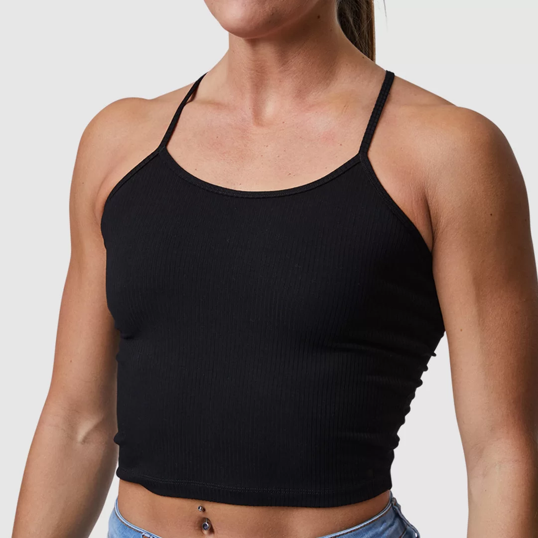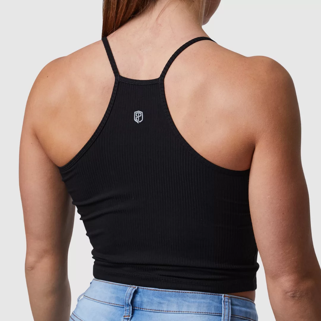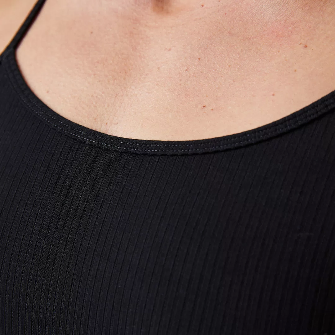 Naisten hihaton paita, joka on suunniteltu pysymään paikoillaan ja tuntumaan mukavalta ihoa vasten. Valmistettu pehmeästä uurretusta kankaasta, joka tekee siitä jämäkän ja kevyesti joustavan.