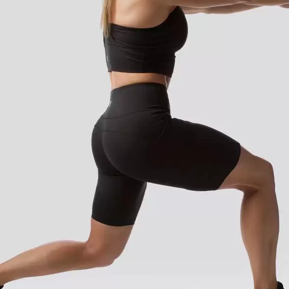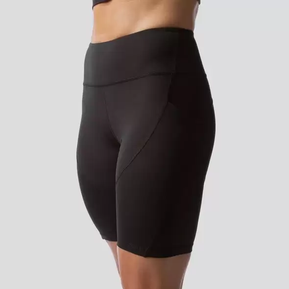 Tässä mallissa sisäsauma on n.20cm tehden näistä shortseista hieman pidemmät, joten ne sopivat loistavasti naisille, jotka tahtovat hieman peittävämmät housut. Kangas on vartaloa myötäilevä nylonin ja elastaanin sekoitus, joten se tuntuu takuulla pehmeältä ja viileältä.