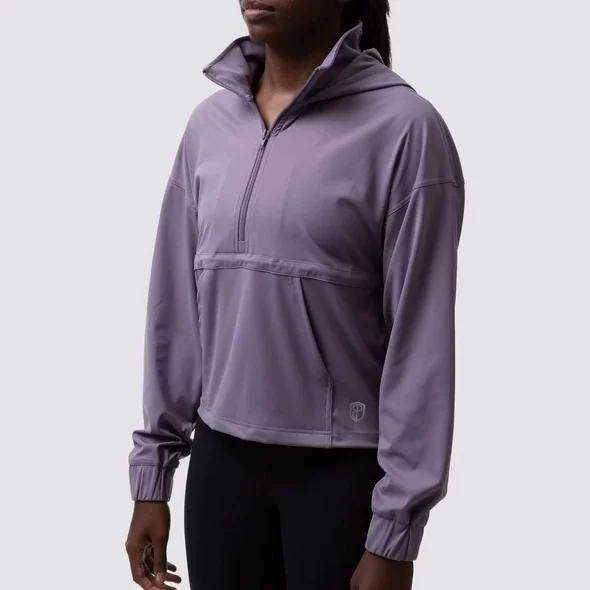 Naisten huppari, jossa on hämmästyttävä uusi materiaali, joka on samalla pehmeä ja joustava. Materiaali on nylonin ja elastaanin sekoitus.
