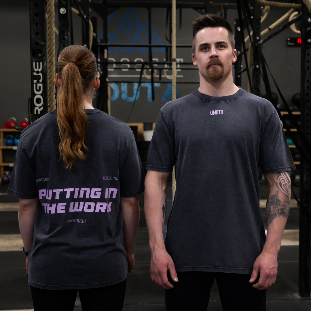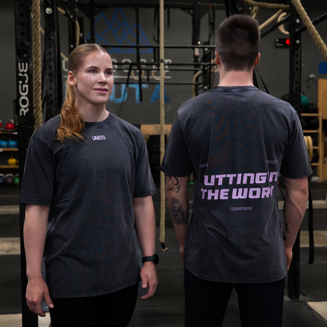 Tämä oversize-mallinen UNDTD t-paita on suunniteltu niille, jotka laittavat itsensä likoon – crossfittaajille, painonnostajille ja kaikille, jotka treenaavat tosissaan. Edessä oleva pieni UNDTD-logo on tyylikäs ja moderni – juuri sopivasti esillä. Selkäpuolella painatus ”Putting in the work” muistuttaa siitä, miksi olet täällä. Premium-puuvilla hengittää erinomaisesti ja istuu rennosti, mutta laadukkaasti. Tämä on treenipaita, joka näyttää yhtä hyvältä salilla kuin sen ulkopuolellakin.